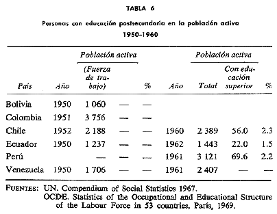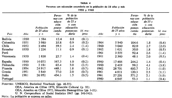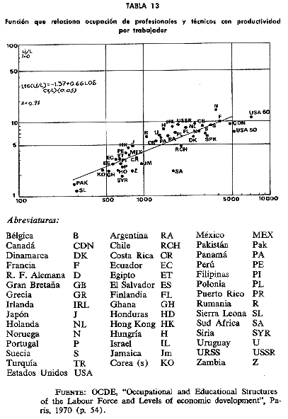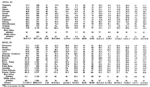 abreviada de las tablas originales preparadas por Harbison y Myers, permite ubicar a los países del área