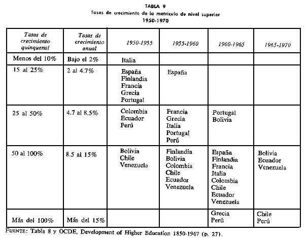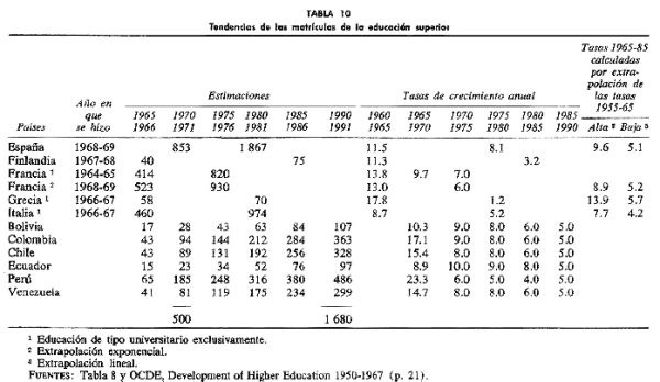 OECD, "Development of Higher Education 1950-1967", París, 1971.