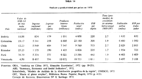 per cápita, logrado por los países del área andina en el decenio 1960-1970 y el del decenio