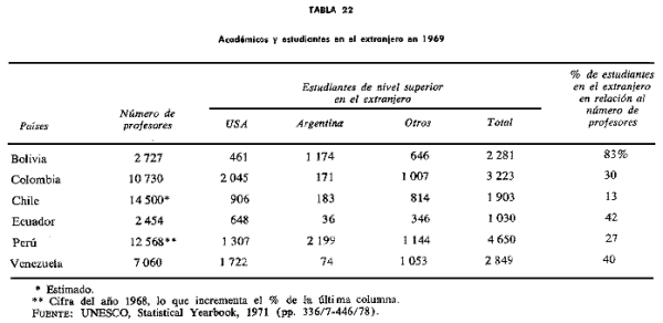que podrían tener una responsabilidad académica en sus respectivos países en el periodo 1970-1990.