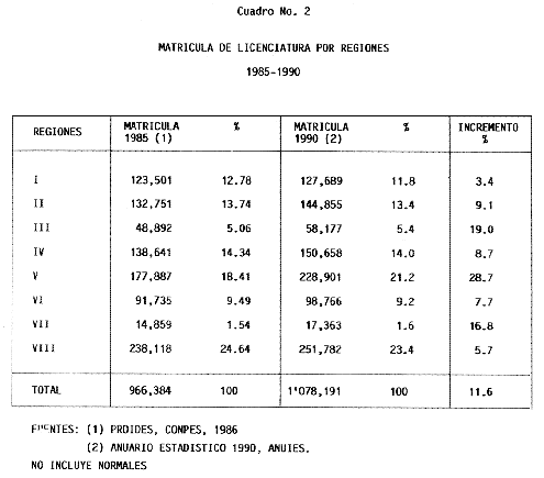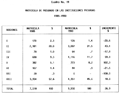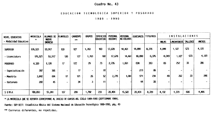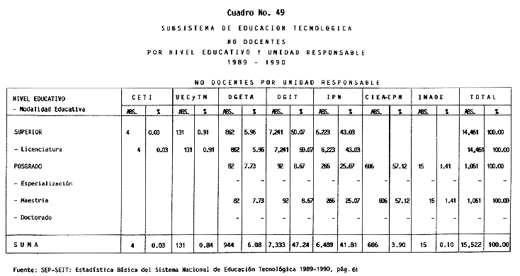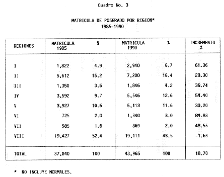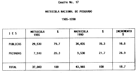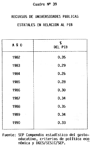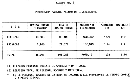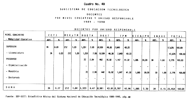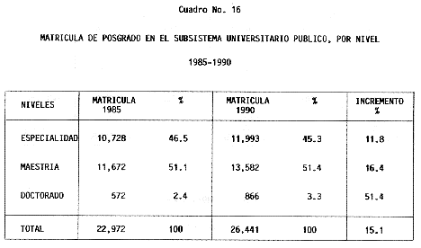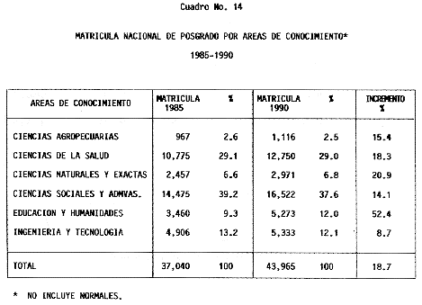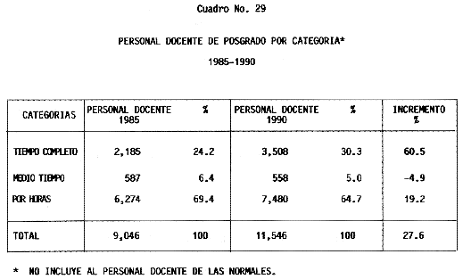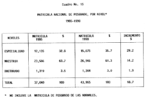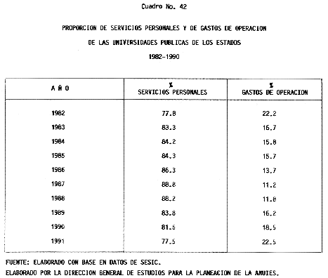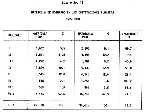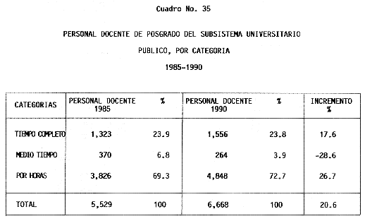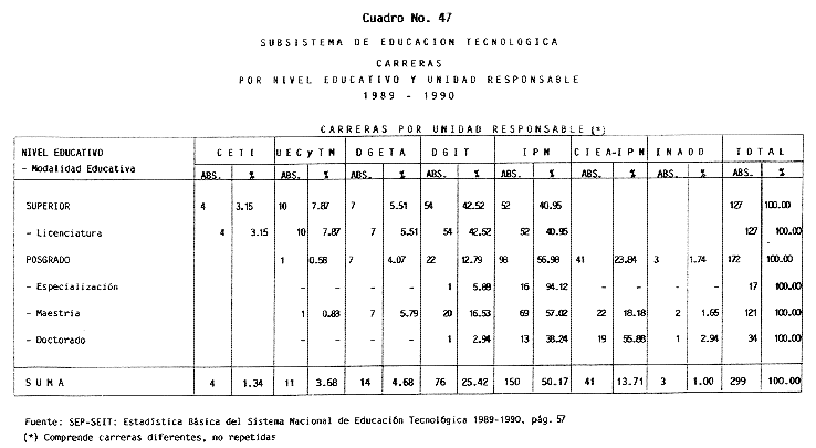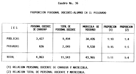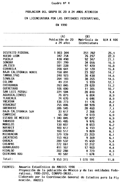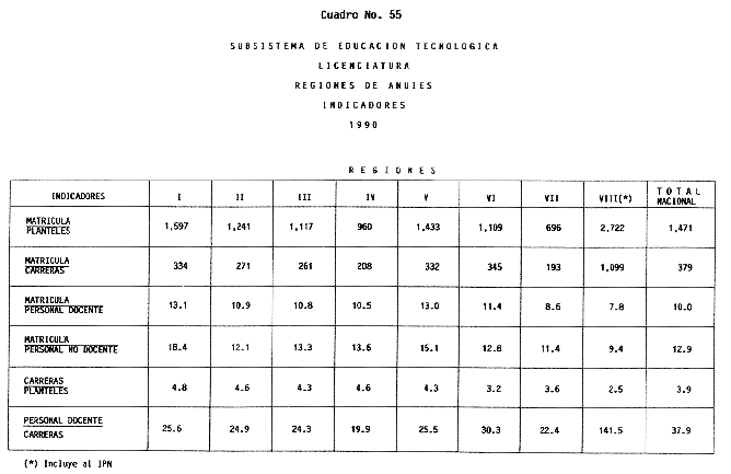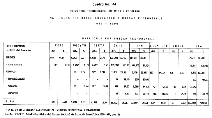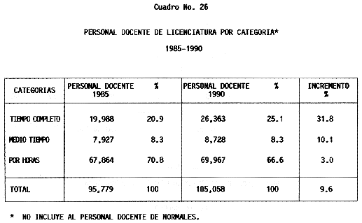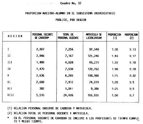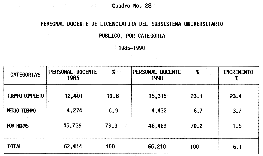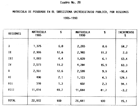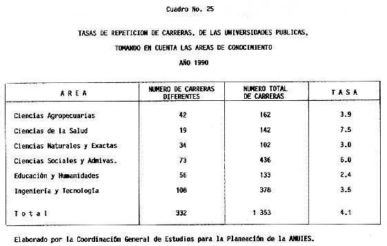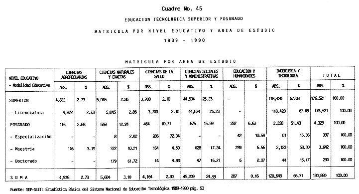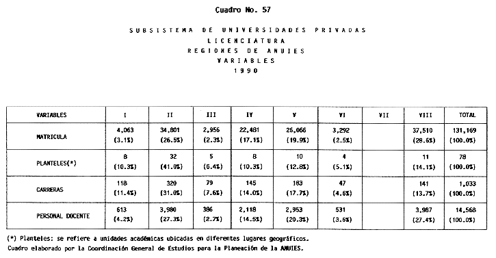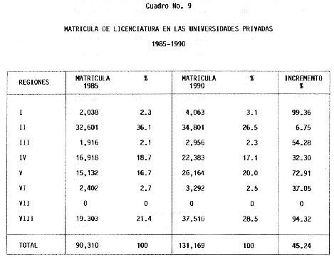 Nota: Varios de los cuadros presentados tiene como fuente el documento: "Evaluación Preliminar del Subsistema Universitario (1990)", Dirección de Desarrollo Universitario, Dirección General de Educación Superior, SESIC-SEP.